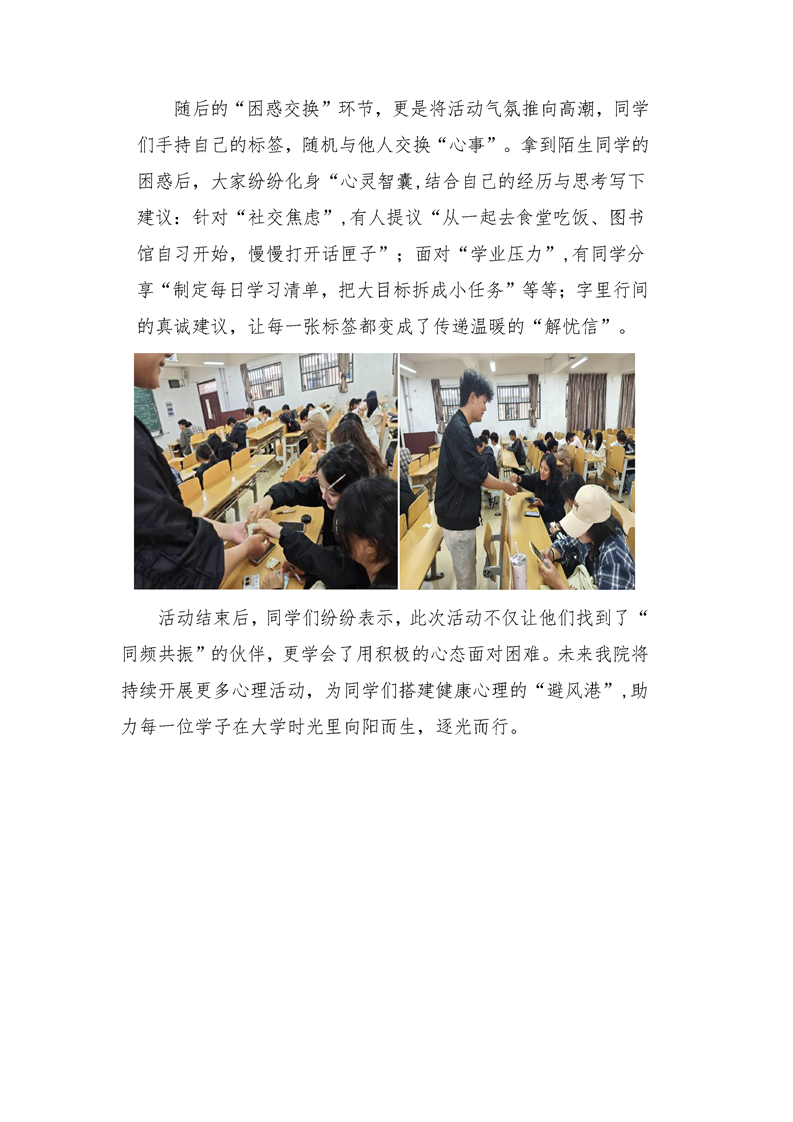 “纸短情长解困惑,心手相牵向未来”——信息工程学院开展“交换困惑,共赴阳光”主题心理活动