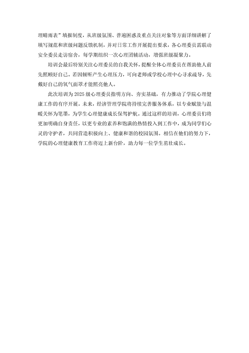 “心”光护航,赋能成长——经济管理学院2025级心理委员综合技能提升会圆满举行