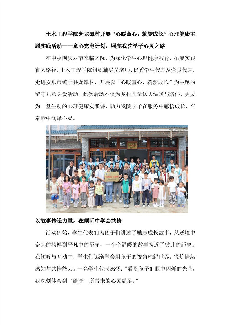 土木工程学院赴龙潭村开展“心暖童心,筑梦成长”心理健康主题实践活动——童心充电计划,照亮我院学子心灵之路