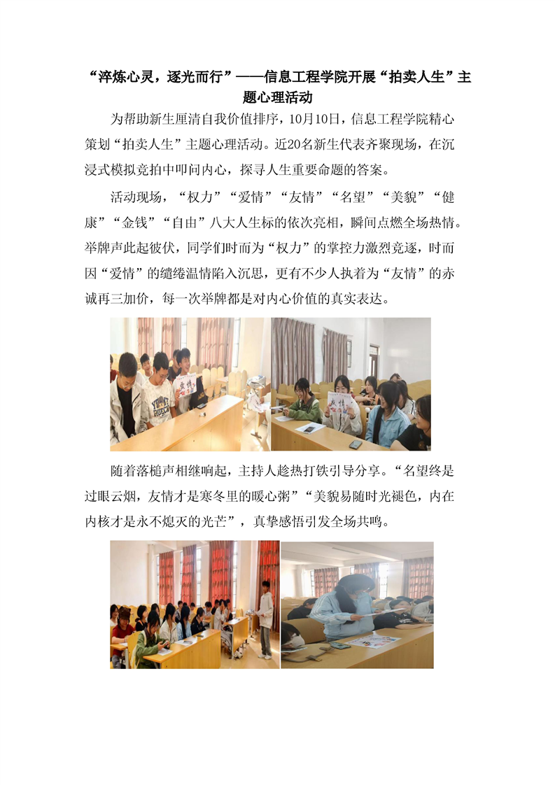 “淬炼心灵,逐光而行”——信息工程学院开展“拍卖人生”主题心理活动