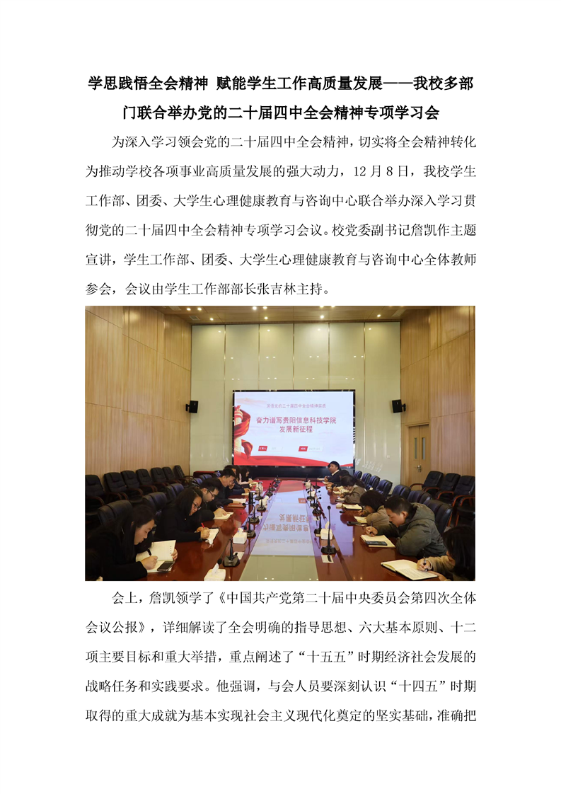 学思践悟全会精神 赋能学生工作高质量发展——我校多部门联合举办党的二十届四中全会精神专项学习会