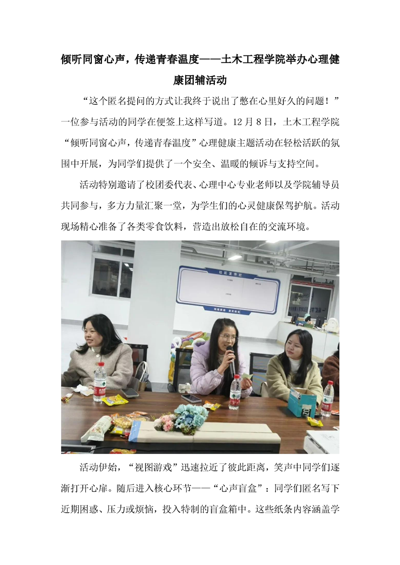 倾听同窗心声,传递青春温度——土木工程学院举办心理健康团辅活动