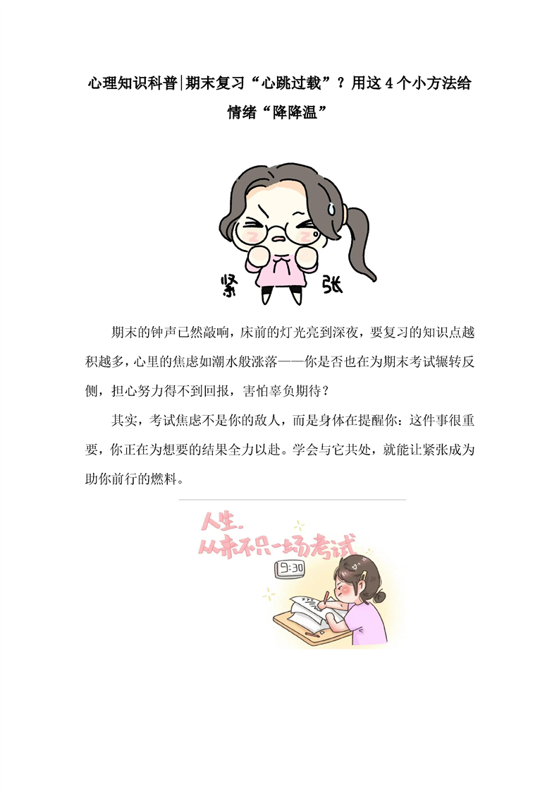 心理知识科普|期末复习“心跳过载”?用这4个小方法给情绪“降降温”