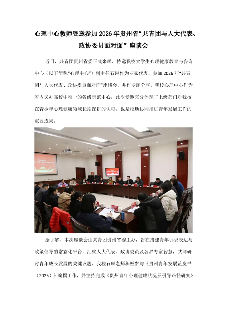 心理中心教师受邀参加2026年贵州省“共青团与人大代表、政协委员面对面”座谈会