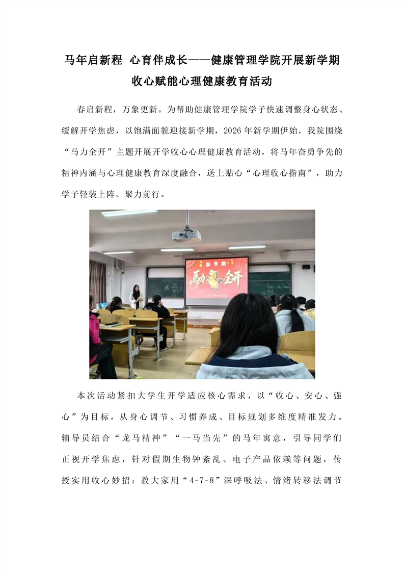 马年启新程 心育伴成长——健康管理学院开展新学期收心赋能心理健康教育活动