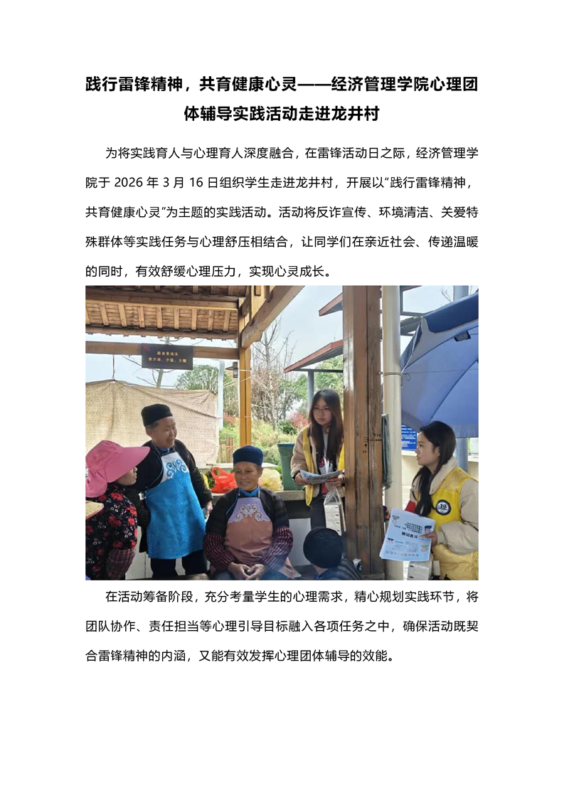 践行雷锋精神,共育健康心灵——经济管理学院心理团体辅导实践活动走进龙井村