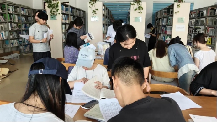 活动现场,同学们以小组为单位,根据任务卡提示穿梭于书架之间,在寻找书籍、完成借阅实操、破译文字密码、拼接经典诗词的过程中默契配合、通力协作。大家在熟悉馆藏资源与借阅流程的同时,于逻辑推理与文字探索中激活思维,在诗词文化浸润中陶冶情操,在轻松有趣的游戏氛围里释放焦虑、舒缓情绪,有效缓解了学习与生活带来的心理压力。