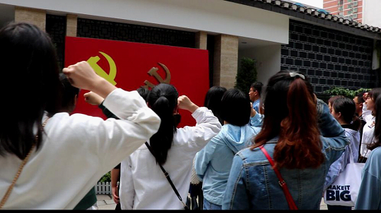 接着,全体学生党员来到省工委旧址纪念馆前的广场,在学生党支部负责人敖波林同志的领誓下,庄严地举起右拳,面向鲜红的党旗再次郑重宣誓,重温了入党誓词。