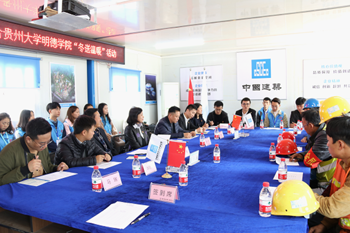 新闻网讯 (团宣/陈力 摄影/朱丽峰) 10月17日,恒大童世界项目党支部联合贵州大学明德学院在中建四局第五建筑工程有限公司开展了“冬送温暖”活动。出席本次活动的嘉宾有贵州大学明德学院党委副书记金明辉同志,党组织叶烈书记,工会主席刘真,项目指挥长田发军,贵州大学明德学院团委肖皓丰老师、招生就业处曾源老师,以及中建四局第五建筑工程有限公司部分工友代表和青协志愿者参加了本次活动。本次活动由共青团贵州大学明德学院委员会主办,贵州大学明德学院社团联青年志愿者协会监察处和管理系分会承办。康伟先生主持了本次活动。