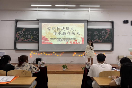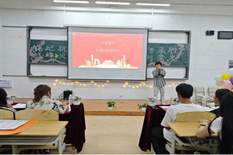 为缅怀革命先烈,厚植家国情怀,2025年9月28日晚,健康管理学院学生会在F103教室举办了主题为“铭记抗战烽火,传承胜利荣光”主题团组织生活评比活动。活动以史为鉴,以青春之名,唱响了新时代的奋进之歌,现场气氛庄重而热烈。