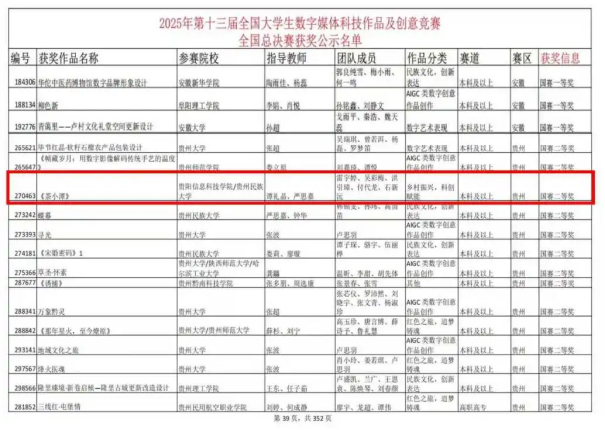 此次获奖,既是参赛学子不懈奋斗的成果,也是我校教师团队“专业指导+后勤保障”协同育人的生动体现,更彰显了数字传媒学院在学科建设、人才培养上的扎实成效与创新活力对于参赛学子而言,这不仅是一次荣誉加冕,更是与全国优秀同龄人交流学习的宝贵机会,进一步拓宽了专业视野、激发了深耕数字媒体领域的热情。