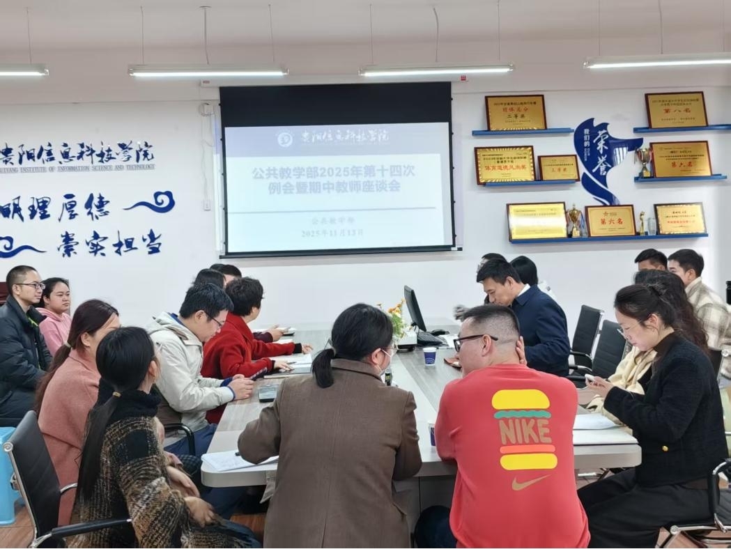 2025年11月13日12:30,公共教学部2025年第十四次例会暨期中教师座谈会在A栋211会议室召开。会议由唐丽华部长主持,学校副书记詹凯、实践实训中心主任江林焱出席,公共教学部全体教师参会。