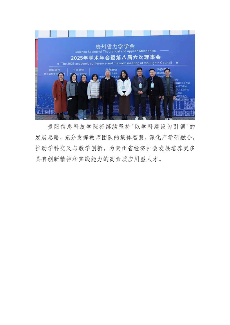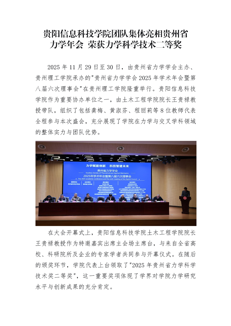 贵阳信息科技学院团队集体亮相贵州省 力学年会 荣获力学科学技术二等奖
