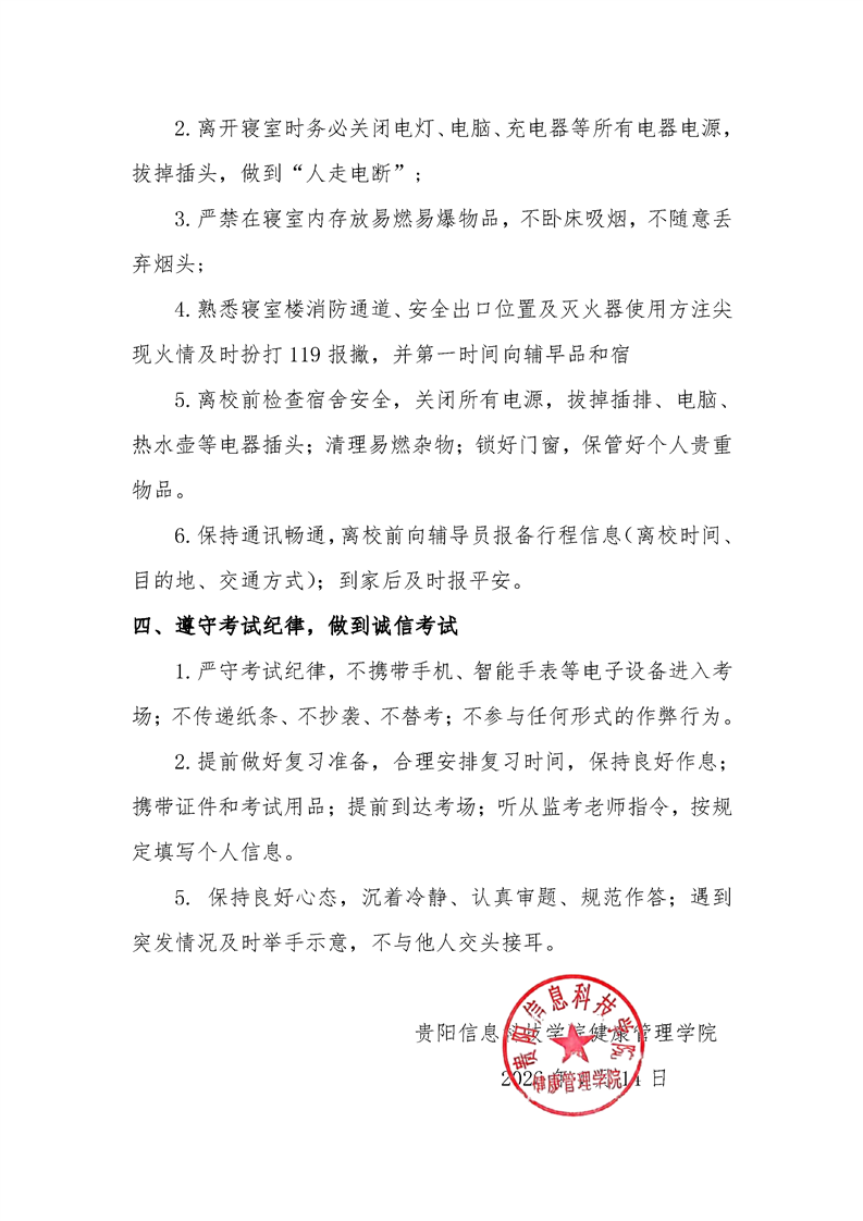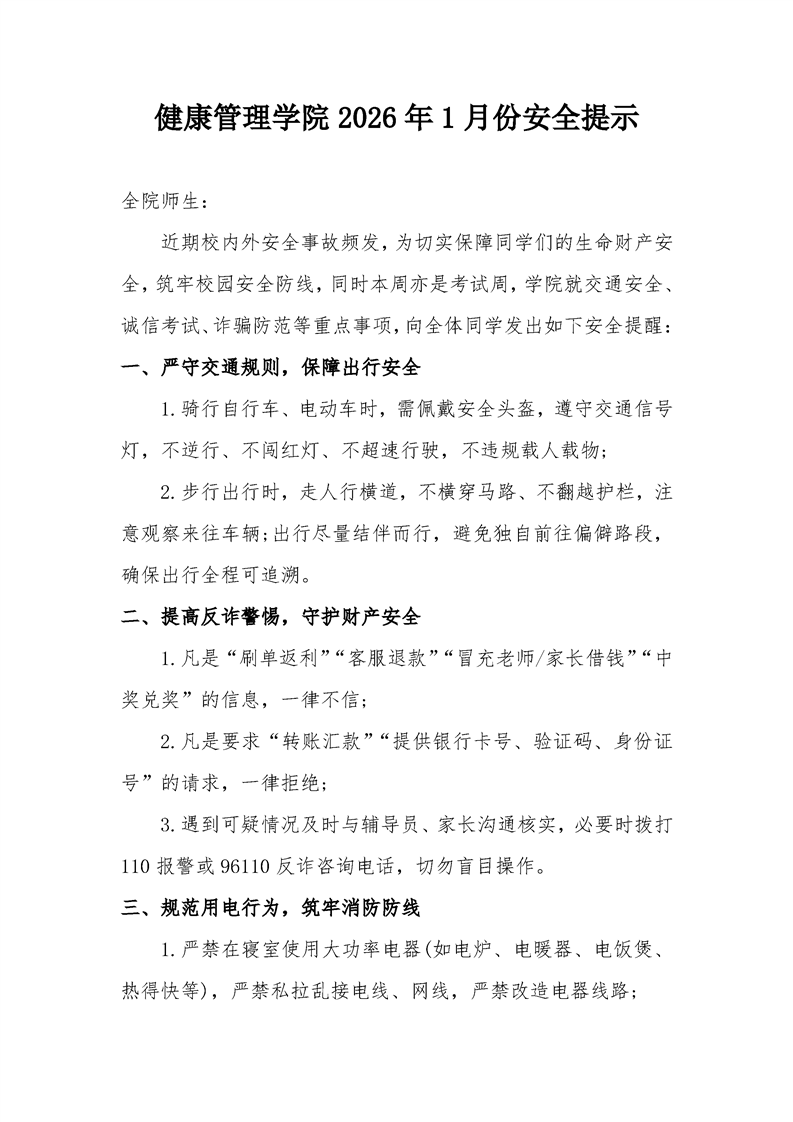 健康管理学院2025-2026年度第一学期期末温馨提示