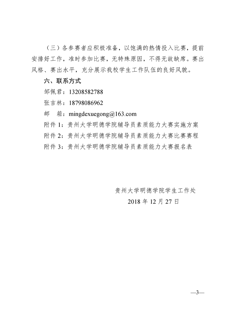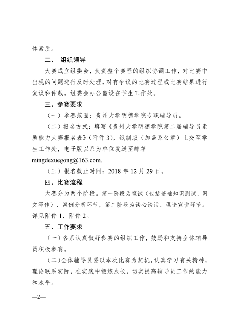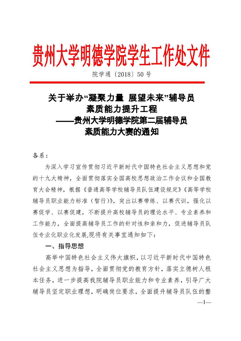 关于举办“凝聚力量 展望未来”辅导员 素质能力提升工程 ——贵州大学明德学院第二届辅导员 素质能力大赛的通知