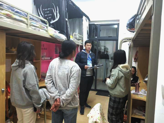 新闻网讯(学工部 邹佩君)为了确保学生们安全返校,学生工作处于3月3日晚,联合全体辅导员开展了新学期第一次查寝工作,询问了学生假期学习生活状况,确认各寝室人员是否按时到校、寝室是否需要设施报修以及寝室是否使用违规电器等情况。