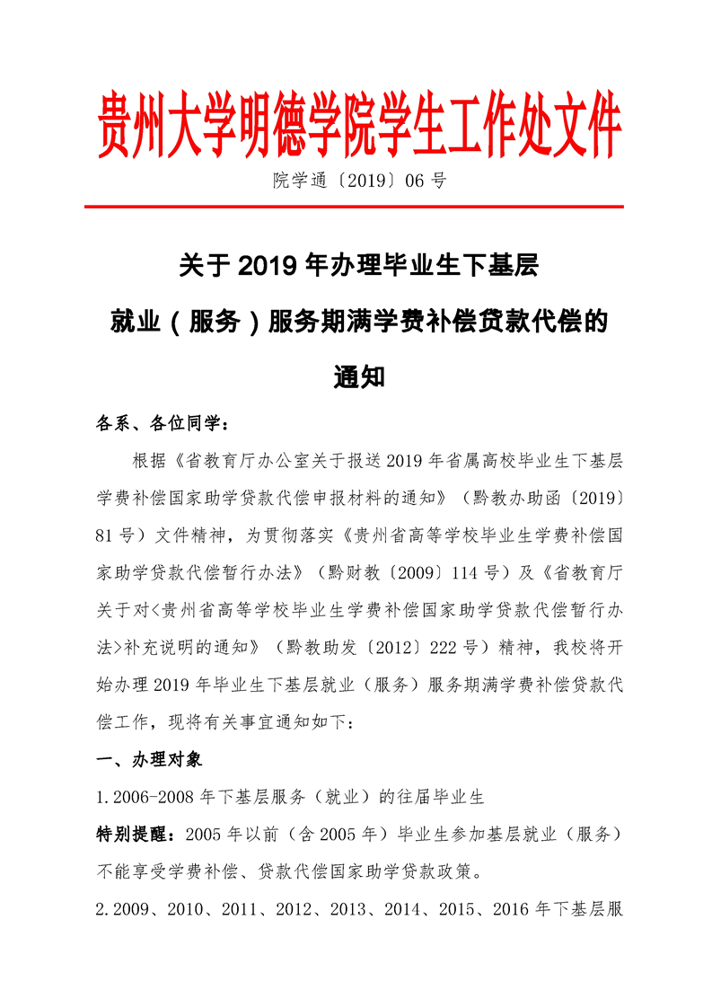 贵州大学明德学院关于做好2019年诚信教育网络答题、贷款展期及续贷申请等相关工作的通知