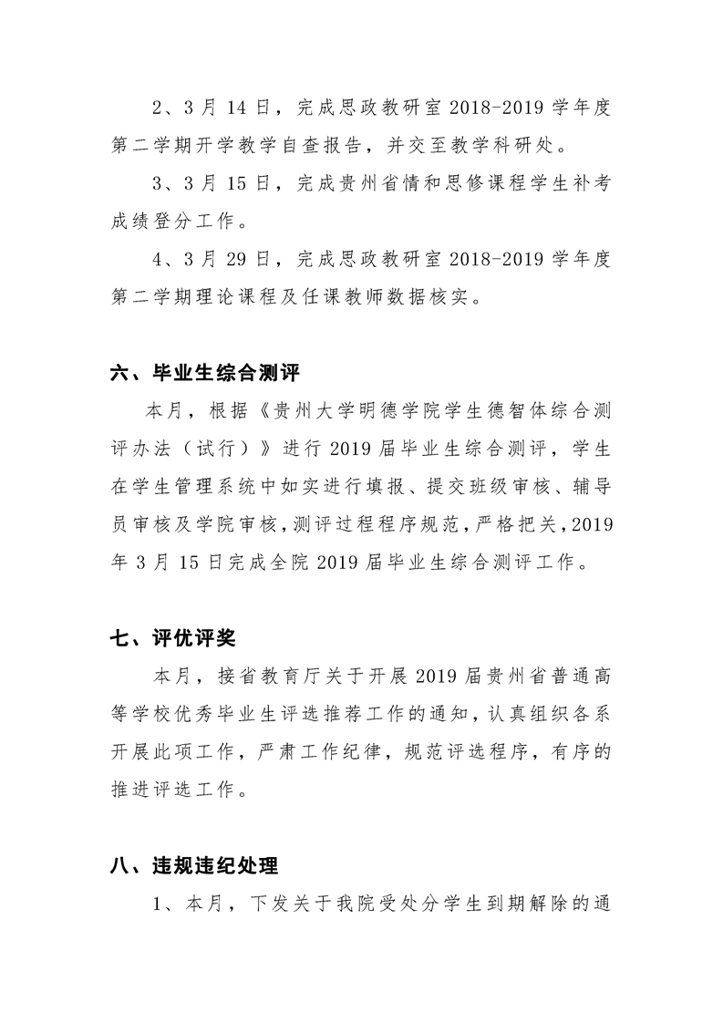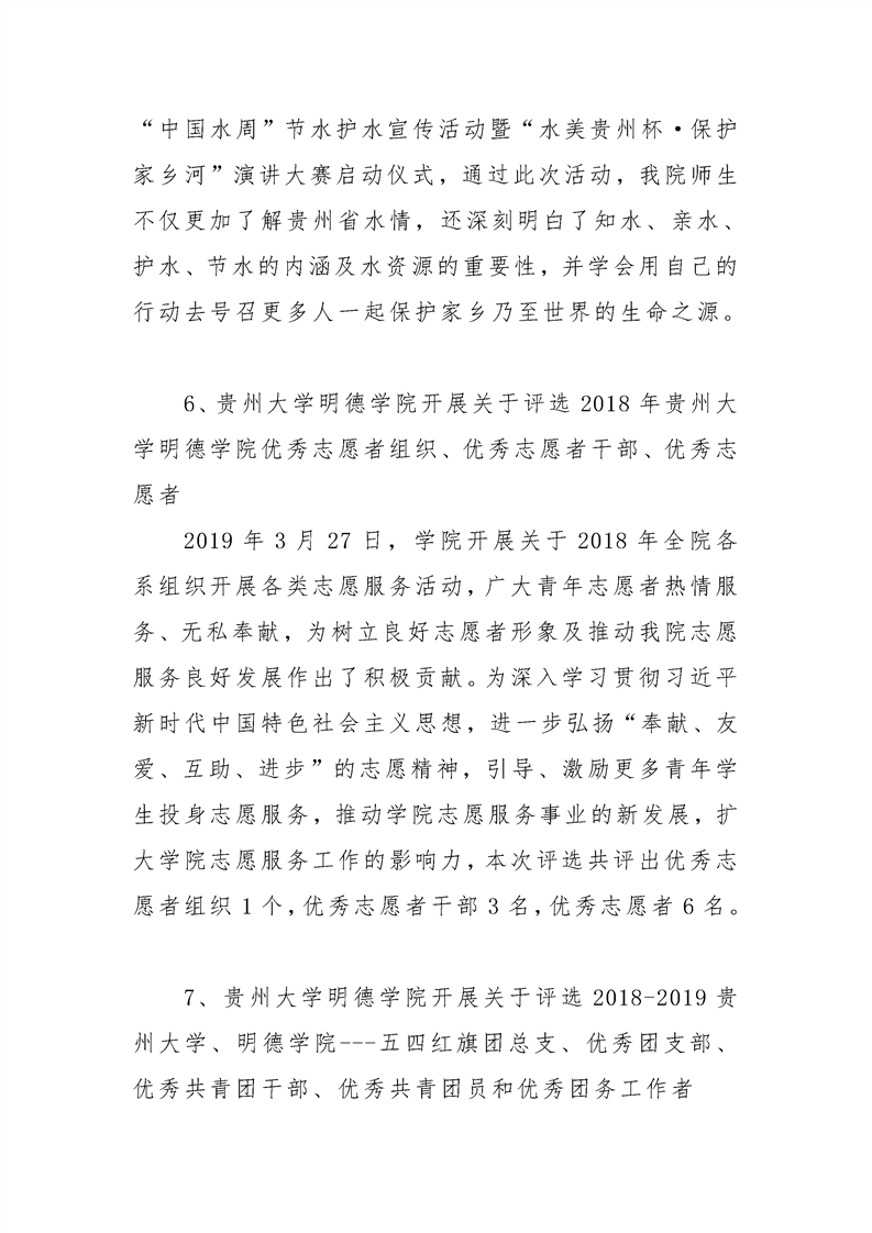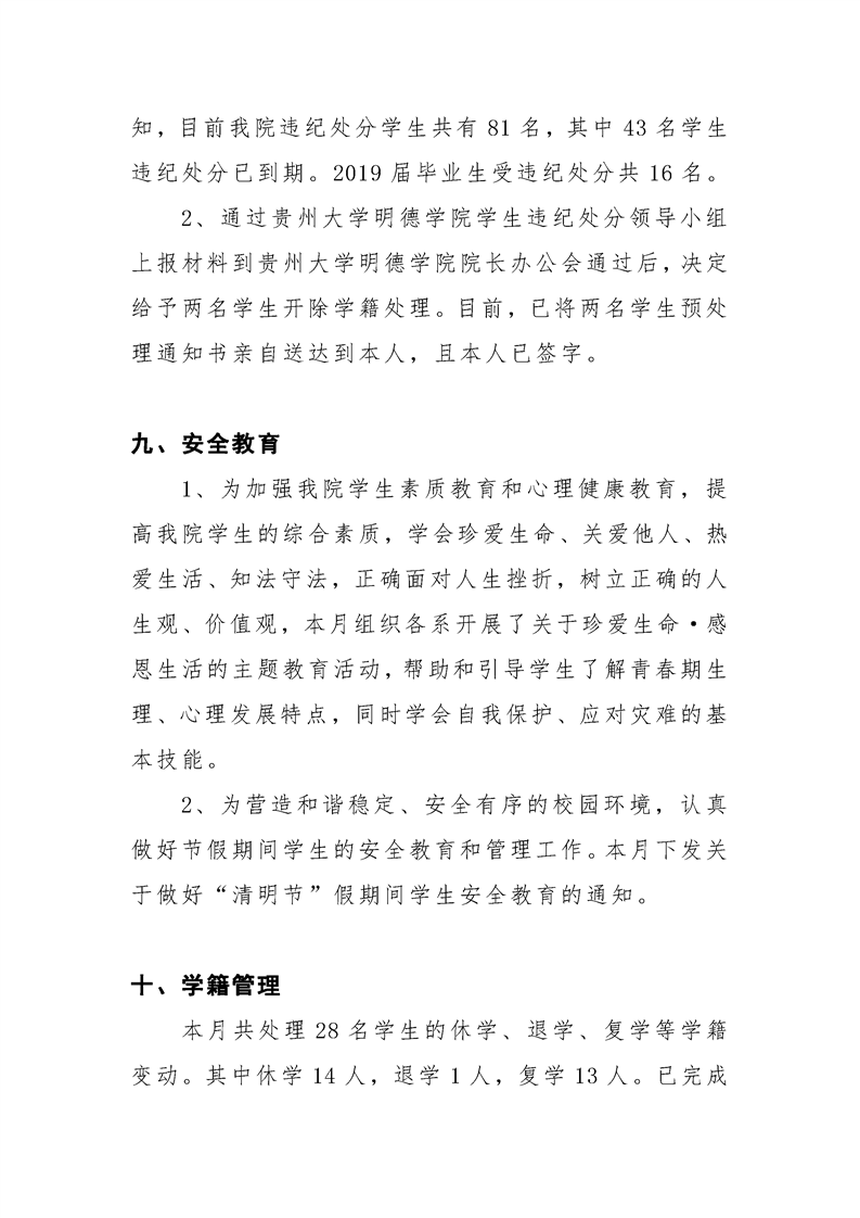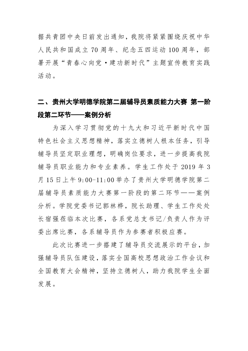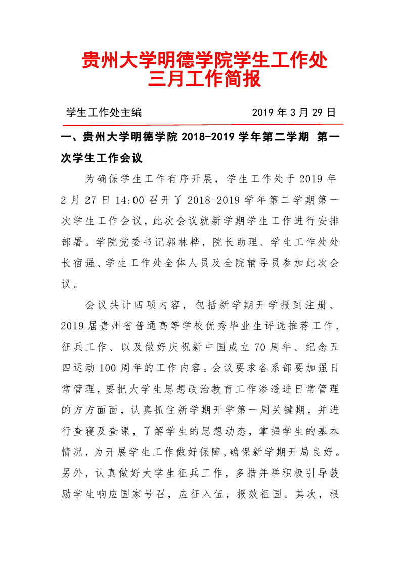 贵州大学明德学院学生工作处2019年3月工作简报
