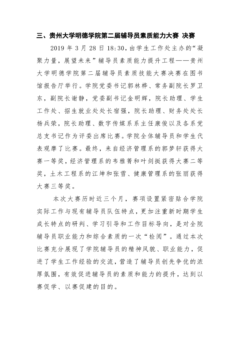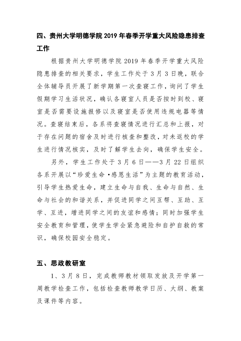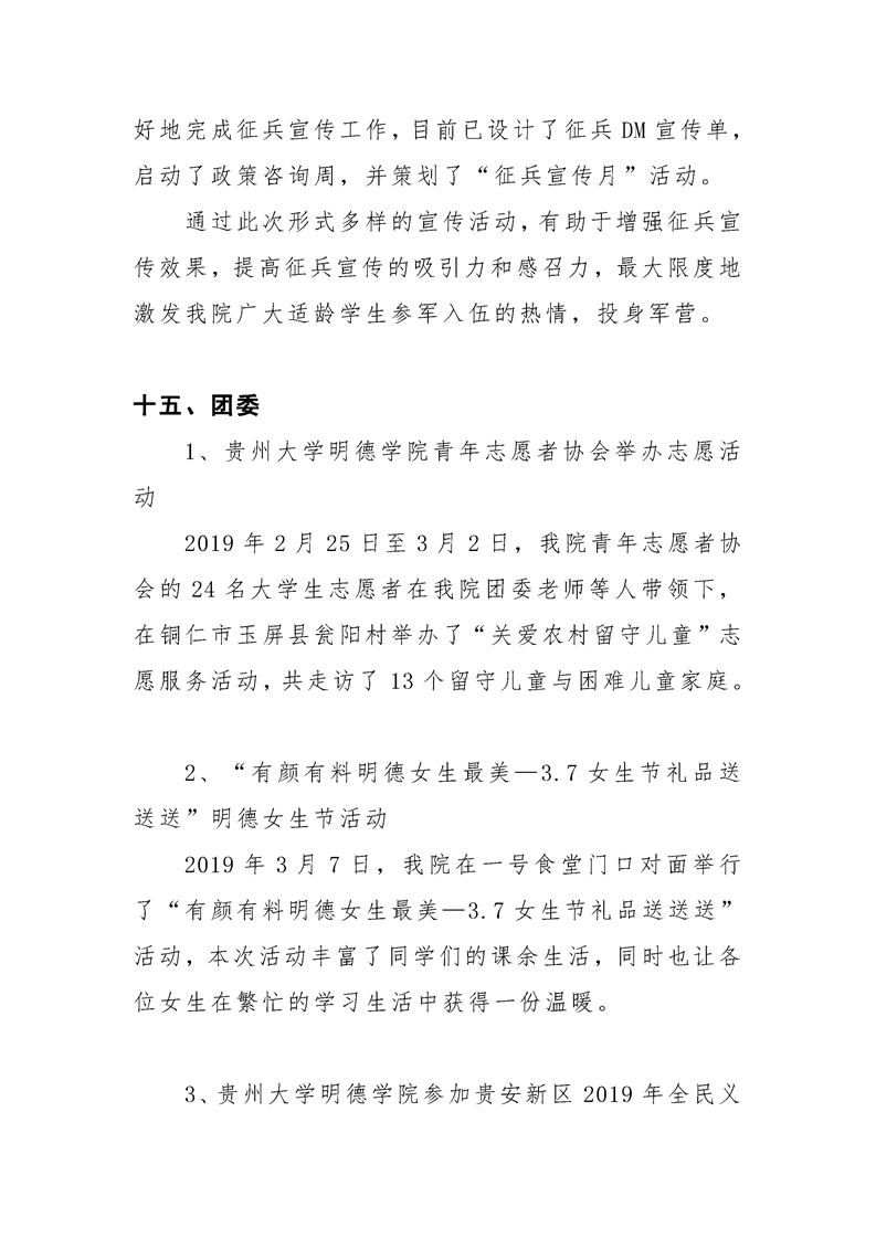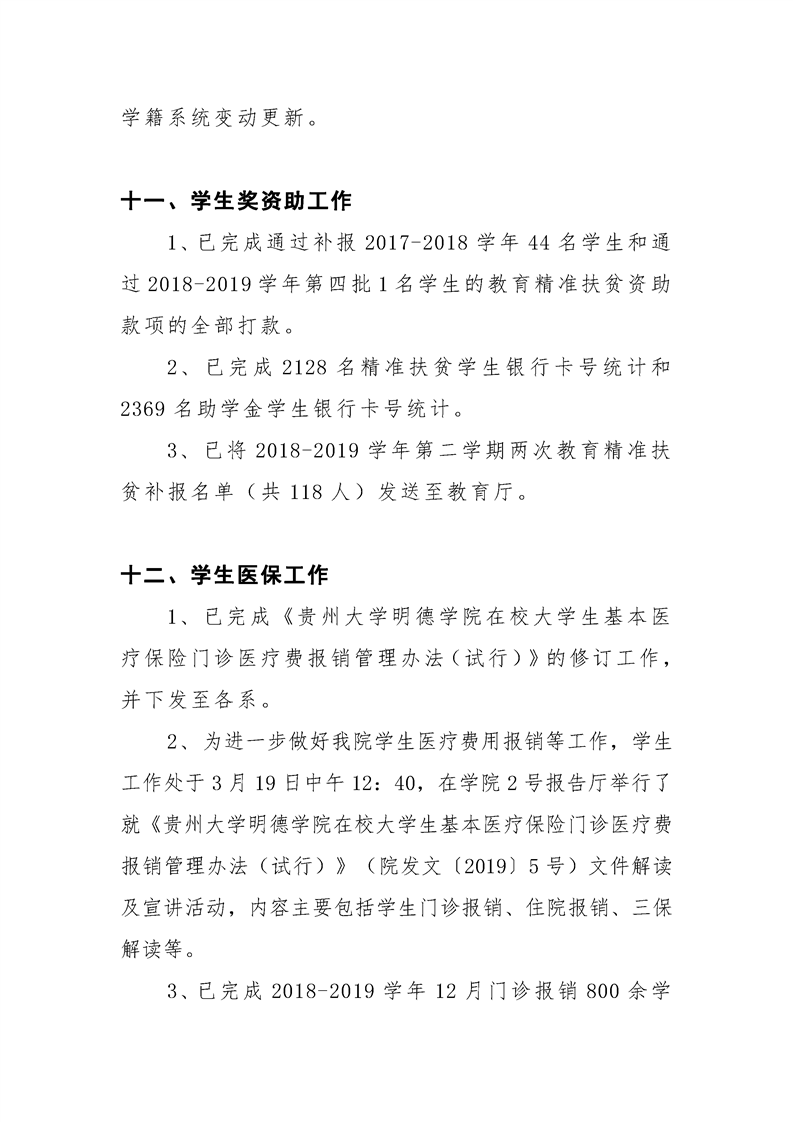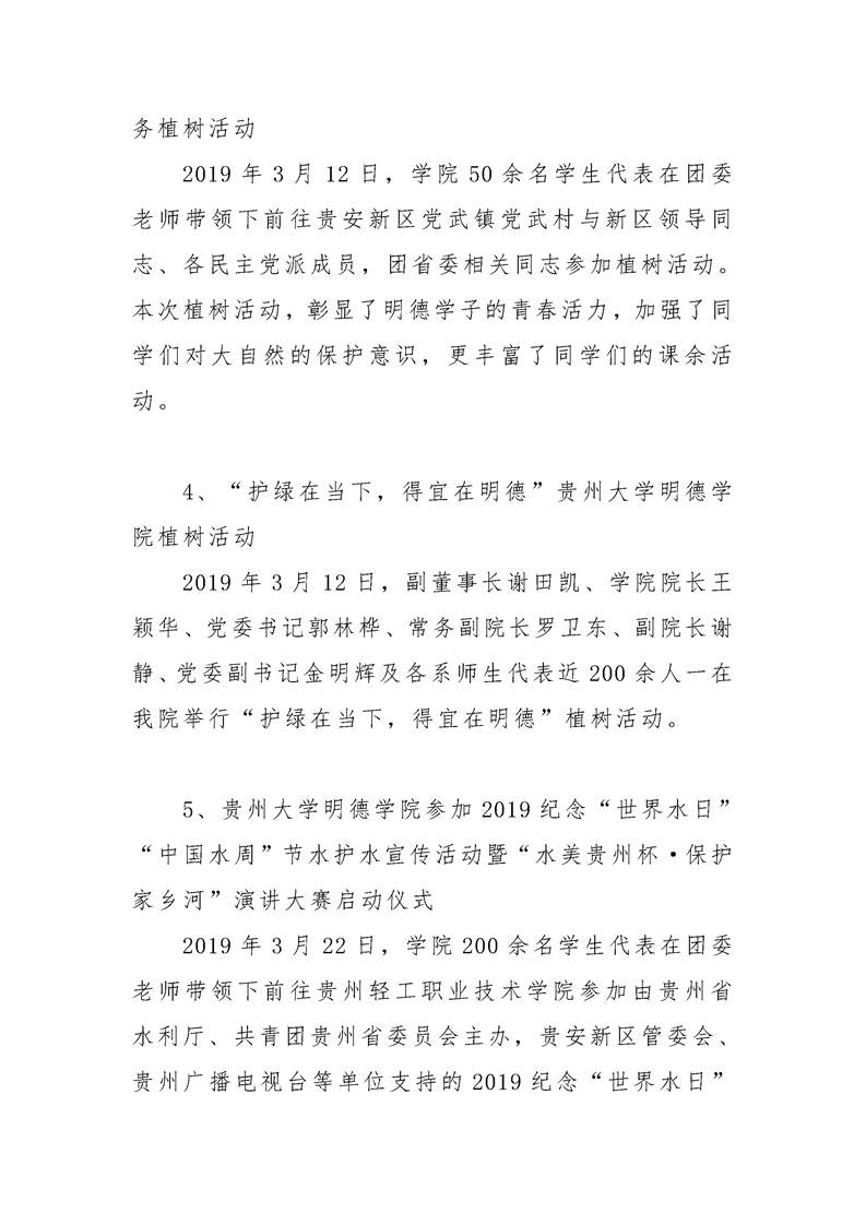 贵州大学明德学院学生工作处2019年3月工作简报