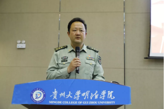 郭林桦代表学院向花溪武装部长期以来对我院大学生征兵工作的支持和帮助表示了感谢,对学院征兵工作站下一步的工作开展提出了要求,并勉励有志入伍的同学,抓住这个难得的历史机遇,把爱国情怀转化为参军报国之志,用青春和热血谱写人生最壮丽的诗篇。