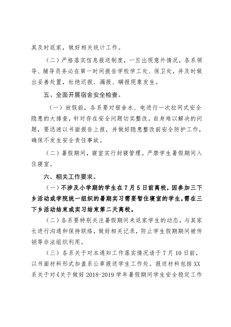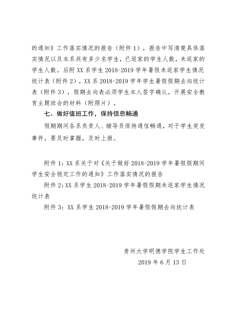 附件1:XX系关于对《关于做好2018-2019学年暑假期间学生安全稳定工作的通知》工作落实情况的报告.doc