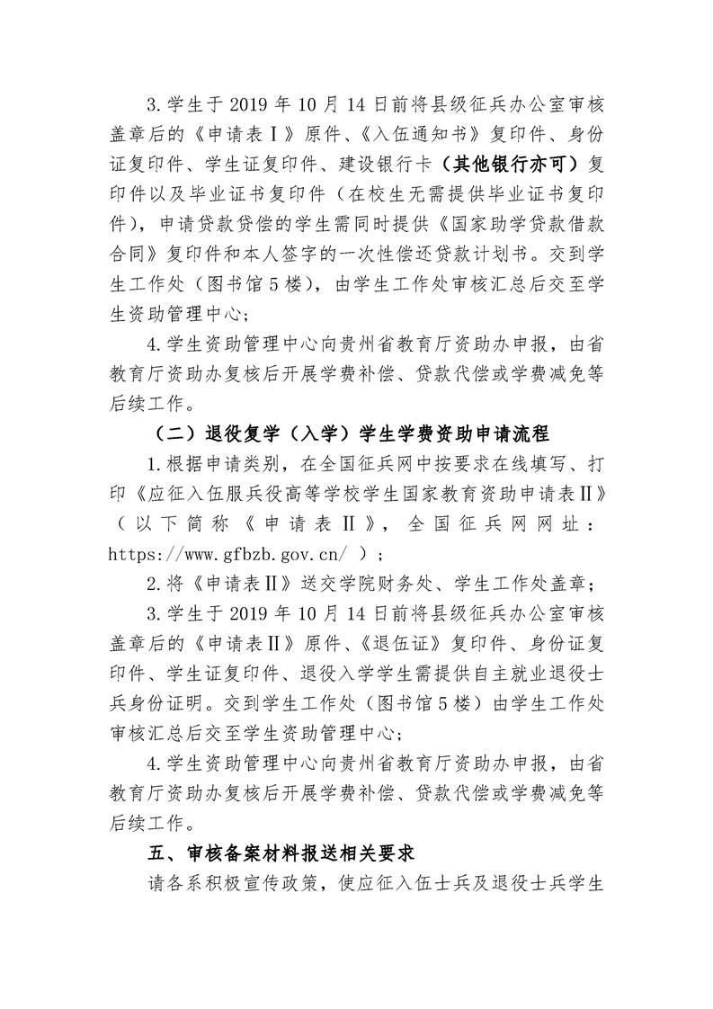 贵州大学明德学院关于报送2019年度高校学生应征入伍服兵役学生国家教育学费资助申请材料的通知
