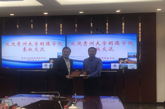 郭林桦对重庆大学城市科技学院的热情接待表示感谢,对重庆大学城市科技学院在办学实践中取得的丰硕成果给予了赞扬。并介绍了我院的发展历史、办学规模、学生管理工作等。他表示,贵州大学明德学院与重庆大学城市科技学院同属民办高校,两校的办学情况有很多相似之处,希望两校在未来的发展过程中进一步加强交流,取长补短,共同进步,为西部地区的发展输送更多优秀人才,为我国民办高等教育事业创造新的辉煌。