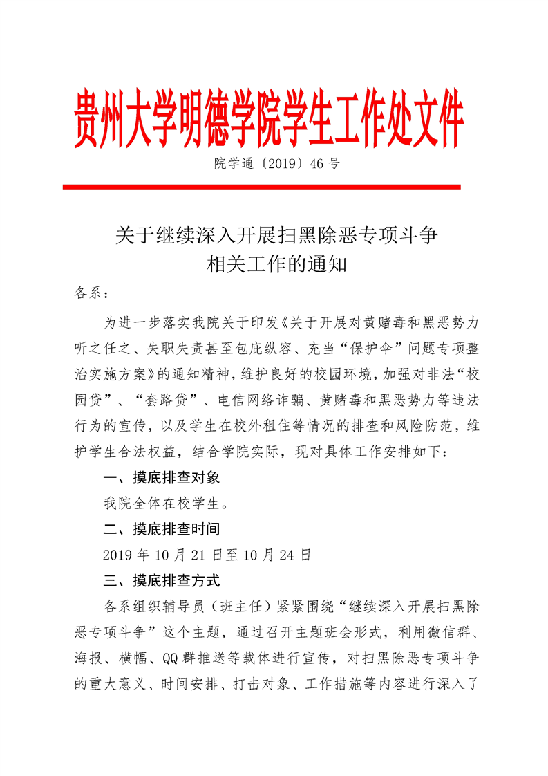 附件一:贵州大学明德学院对“校园贷”“套路贷”、电信网络诈骗、黄赌毒、黑恶势力情况排查汇总表.xls