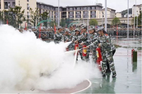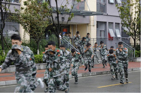 随着警报声的响起,在指导员及军训教官指挥下,同学们立即按照逃生基本技能,用毛巾、衣物掩住口鼻,迅速有序地从寝室撤至楼外安全地带,贵安新区消防车随即开赴现场,化解“险情”。