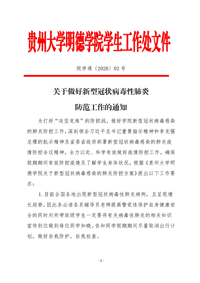 关于做好新型冠状病毒性肺炎防范工作的通知