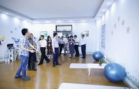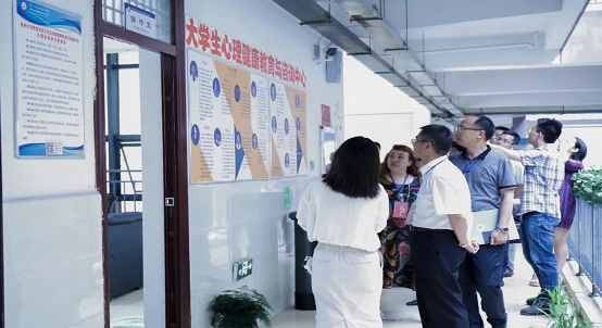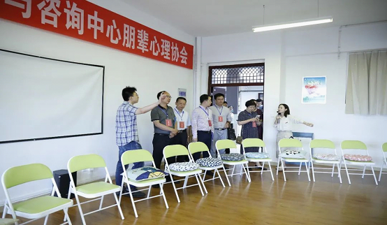 评审汇报结束后,评审专家组一行到大学生心理健康教育与咨询中心实地走访,参观了心理中心的接待室、办公室、测量室、咨询室、宣泄室、放松室、团体辅导室、杨丽春中国本土心理剧工作室等各项功能室。评审专家组还参观了学院的阳明书院。