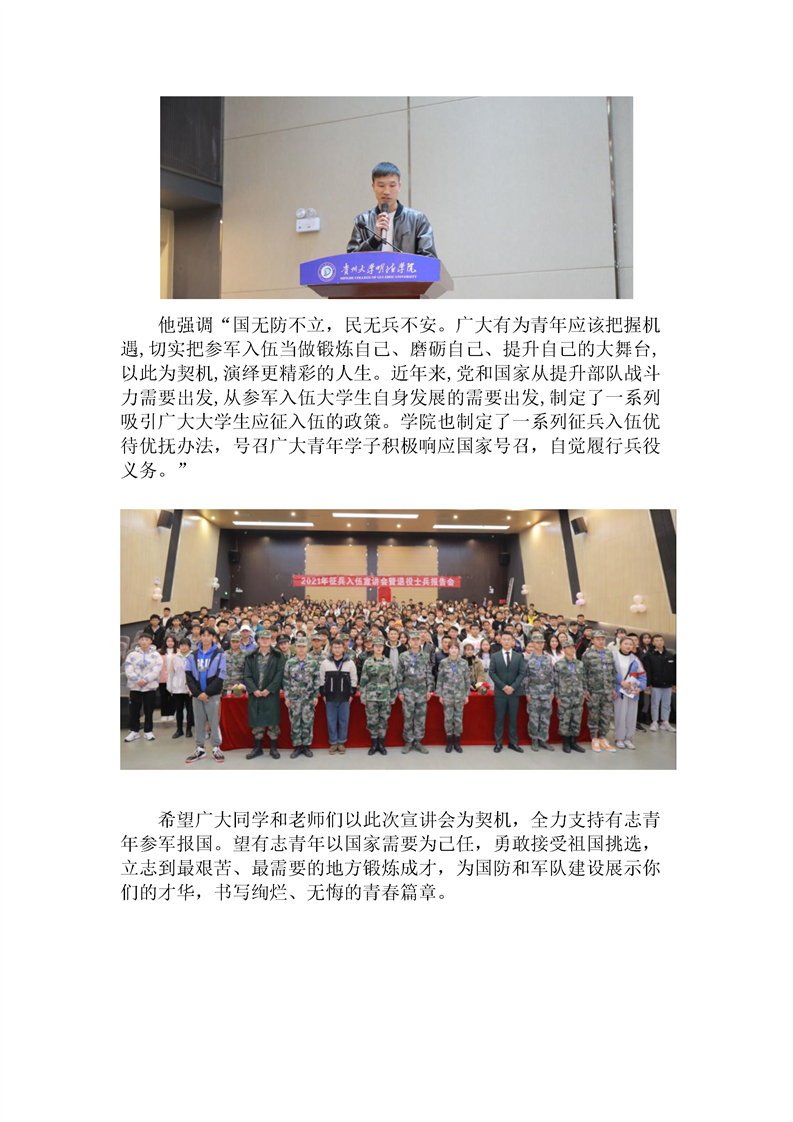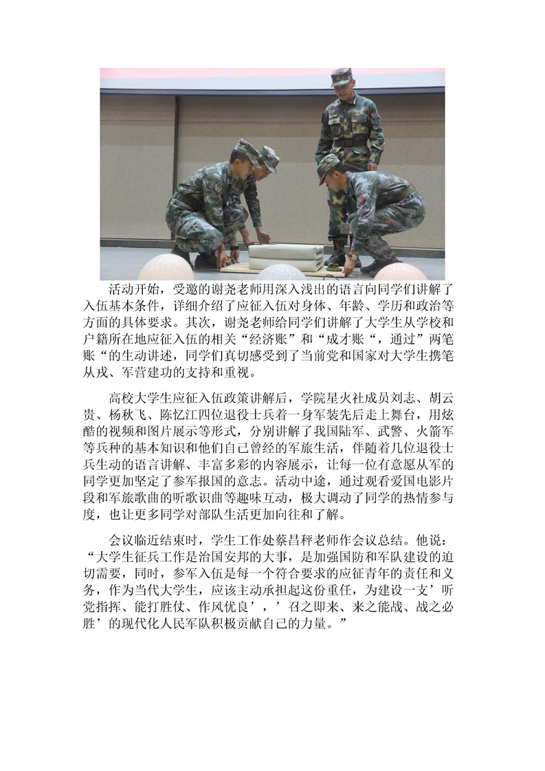 2021年征兵入伍宣讲会暨退役士兵报告会