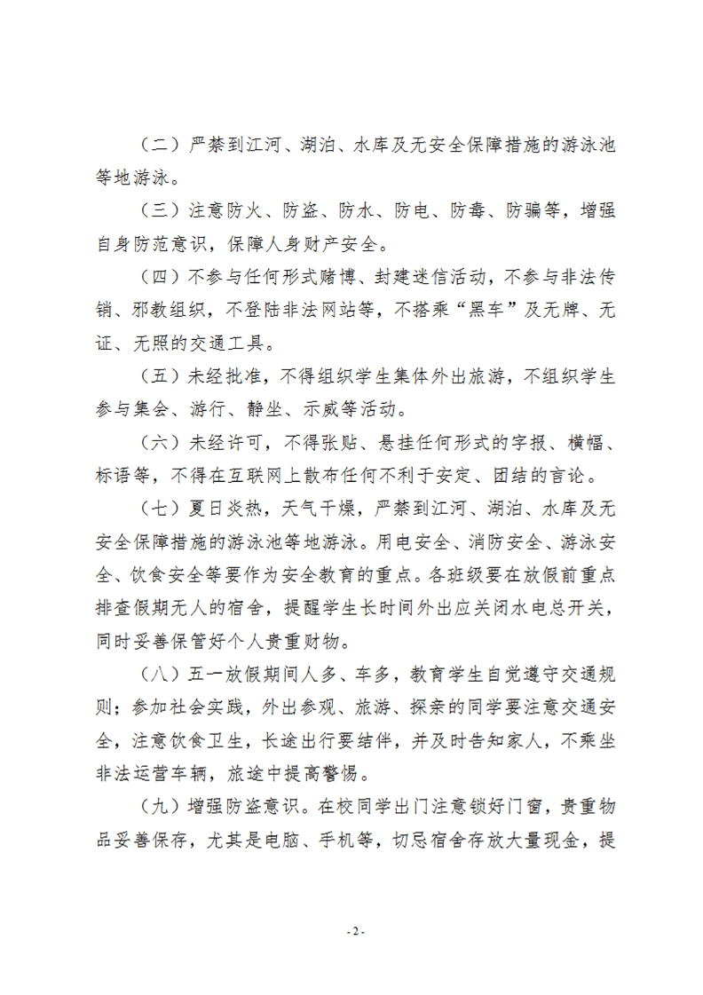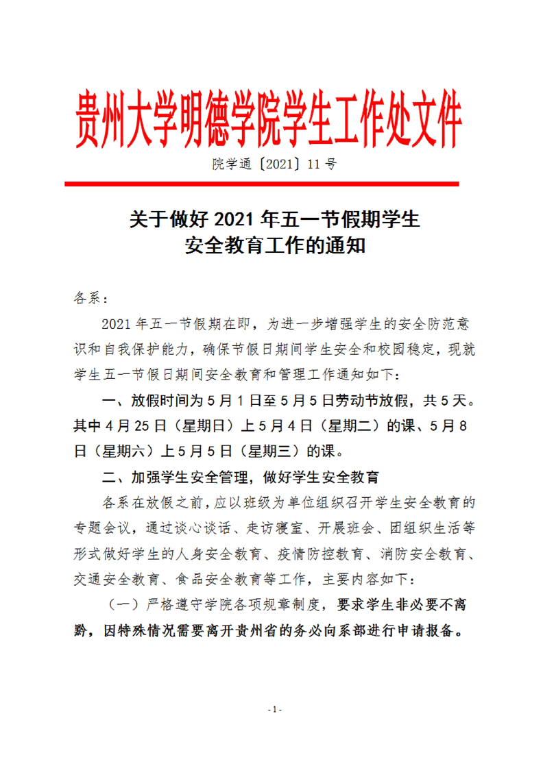 关于做好2021年五一节假期学生安全教育通知
