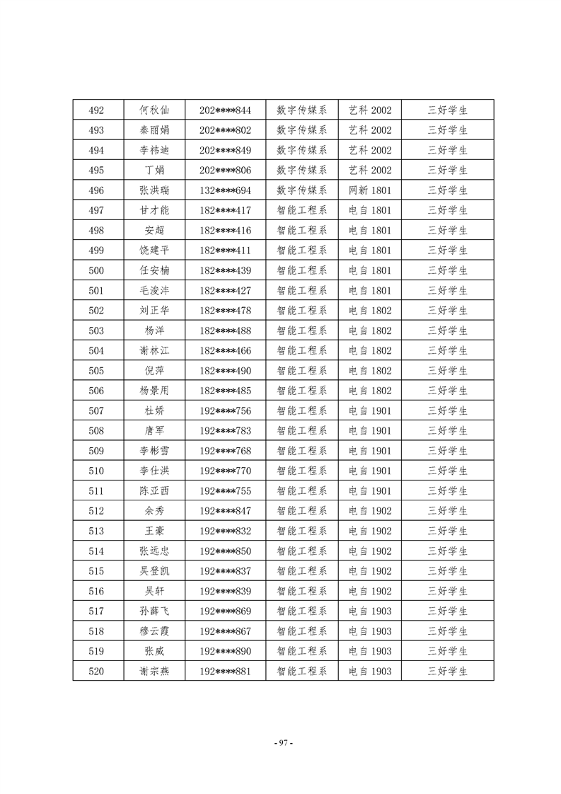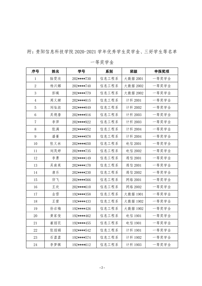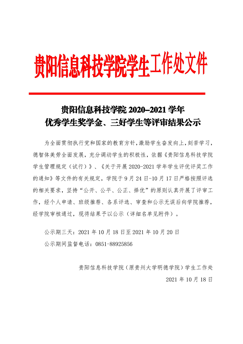 贵阳信息科技学院2020-2021学年评优评奖学生名单公示