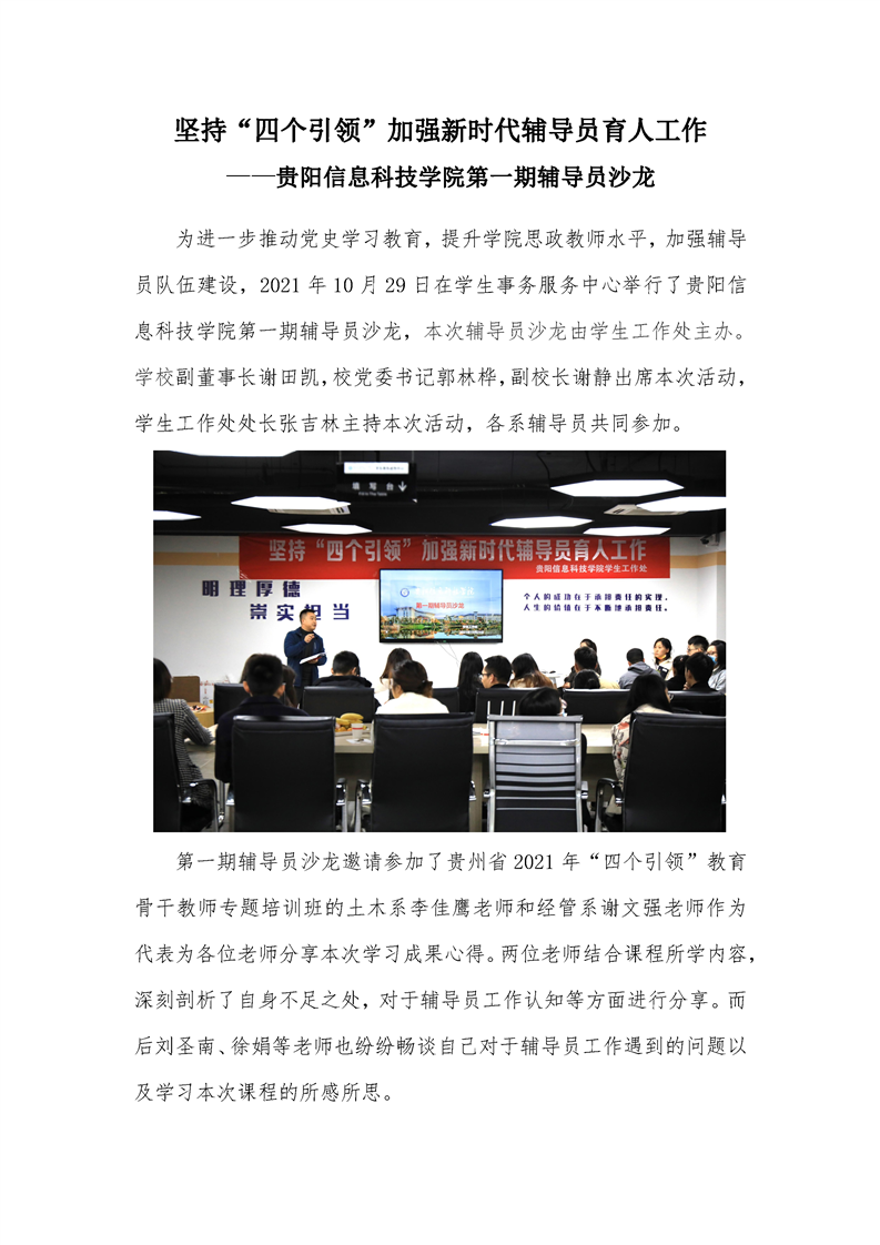 坚持“四个引领”加强新时代辅导员育人工作--贵阳信息科技学院第一期辅导员沙龙