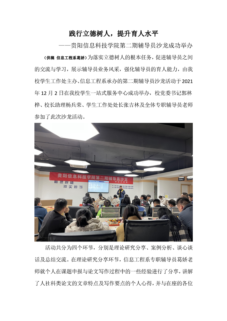 “践行立德树人,提升育人水平” --贵阳信息科技学院第二期辅导员沙龙