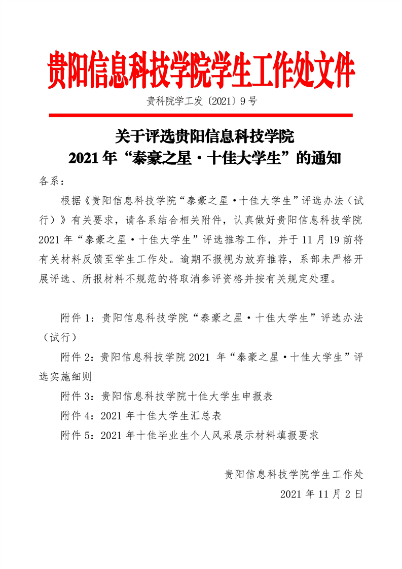 贵阳信息科技学院 关于评选2021年“泰豪之星·十佳大学生”的通知