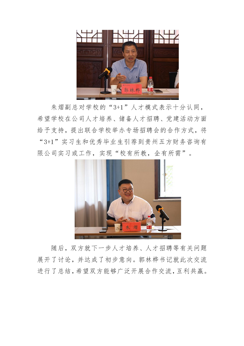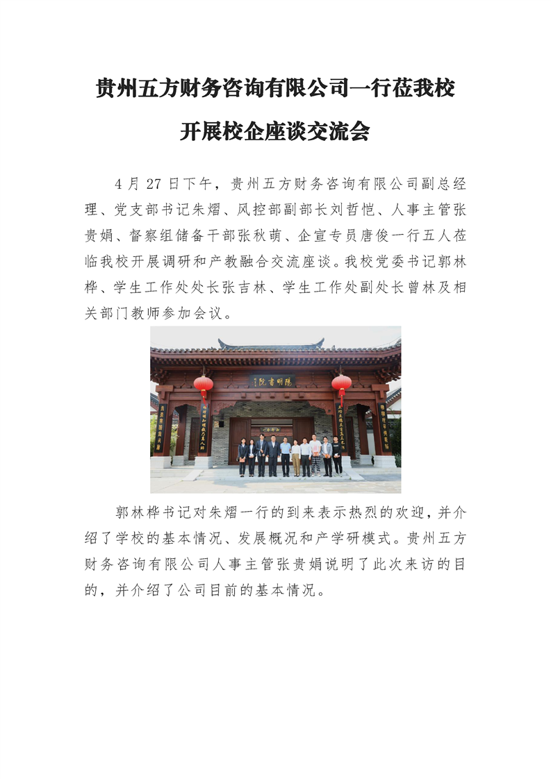 贵州五方财务咨询有限公司一行莅我校开展校企座谈交流会