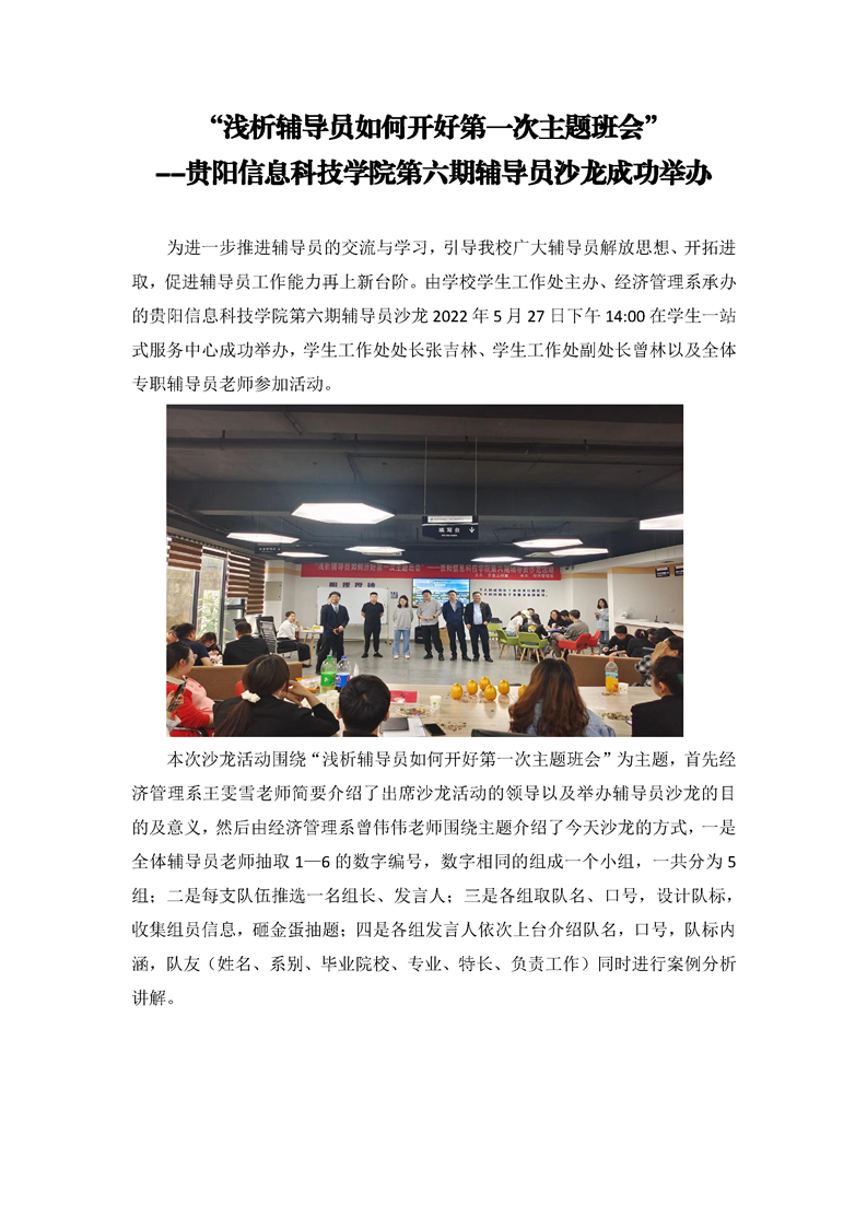 “浅析辅导员如何开好第一次主题班会”--贵阳信息科技学院第六期辅导员沙龙成功举办