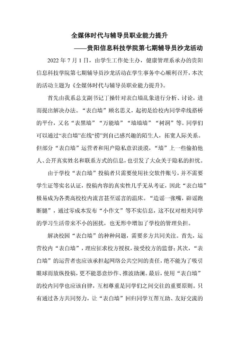 全媒体时代与辅导员职业能力提升--贵阳信息科技学院第七期辅导员沙龙活动