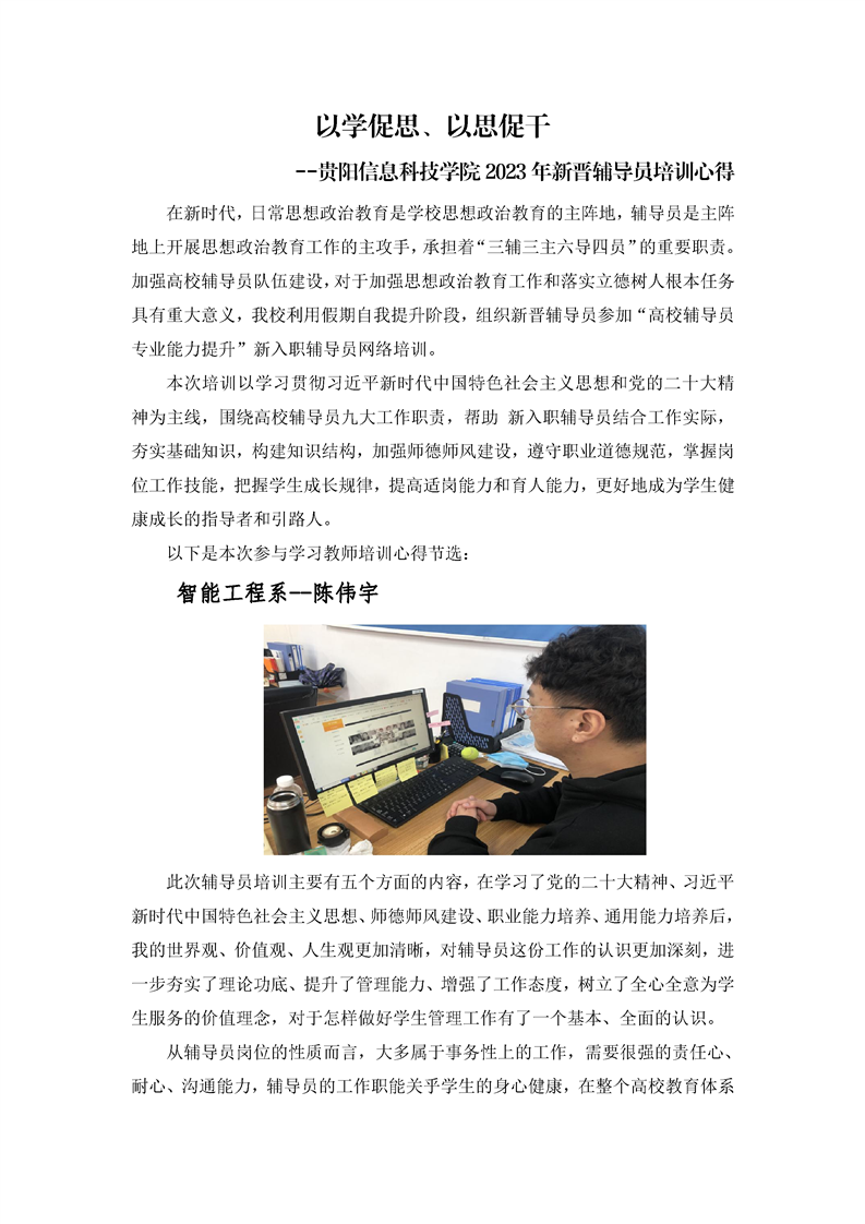 以学促思、以思促干|贵阳信息科技学院2023年新晋辅导员培训心得