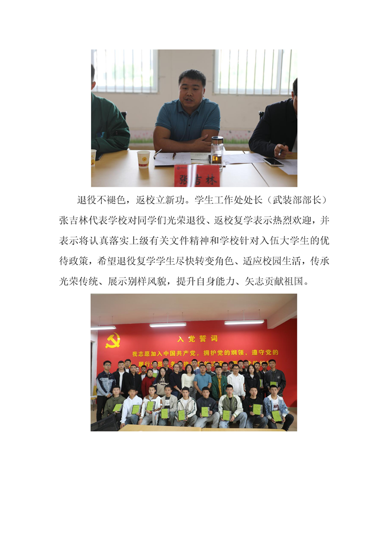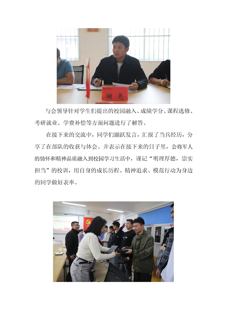 “迷彩不褪色,青春正闪亮”我校组织开展退役大学生团建活动
