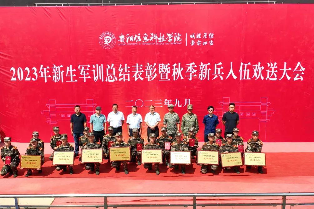 淬炼钢铁品质,奏响青春华章。9月10日上午,我校2023年新生军训总结表彰暨秋季新兵入伍欢送大会圆满举行。同学们用饱满的精神、整齐的步伐、昂扬的斗志等待领导和老师们的检阅。出席本次活动的领导有:贵阳市南明区人武部副部长王玉明,贵阳市南明区人武部军事科科长李正,贵阳信息科技学院校长(首席治校专家)唐建荣,党委书记郭林桦,副校长饶斌华、杨波,校长助理黄晓儒,校长助理、传媒系主任李锐锋,学校理事会秘书李恒文。本次活动由副校长饶斌华主持。