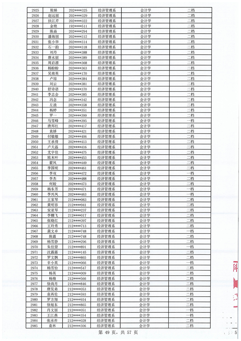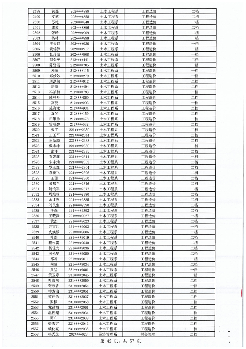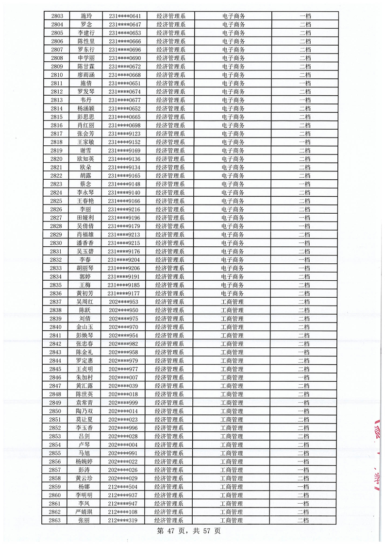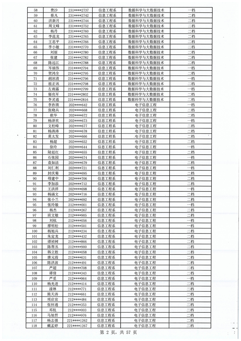 贵阳信息科技学院关于2022-2023学年拟获国家助学金学生名单公示