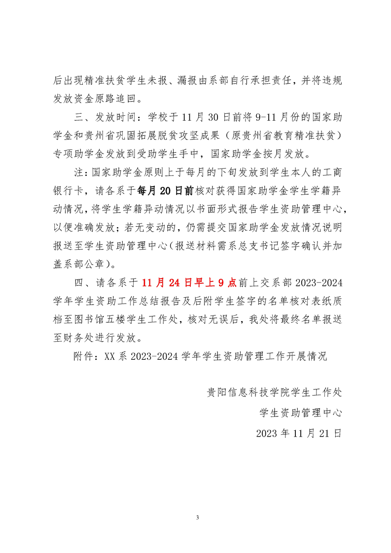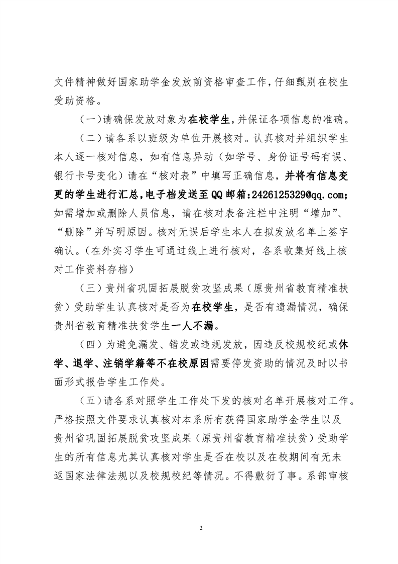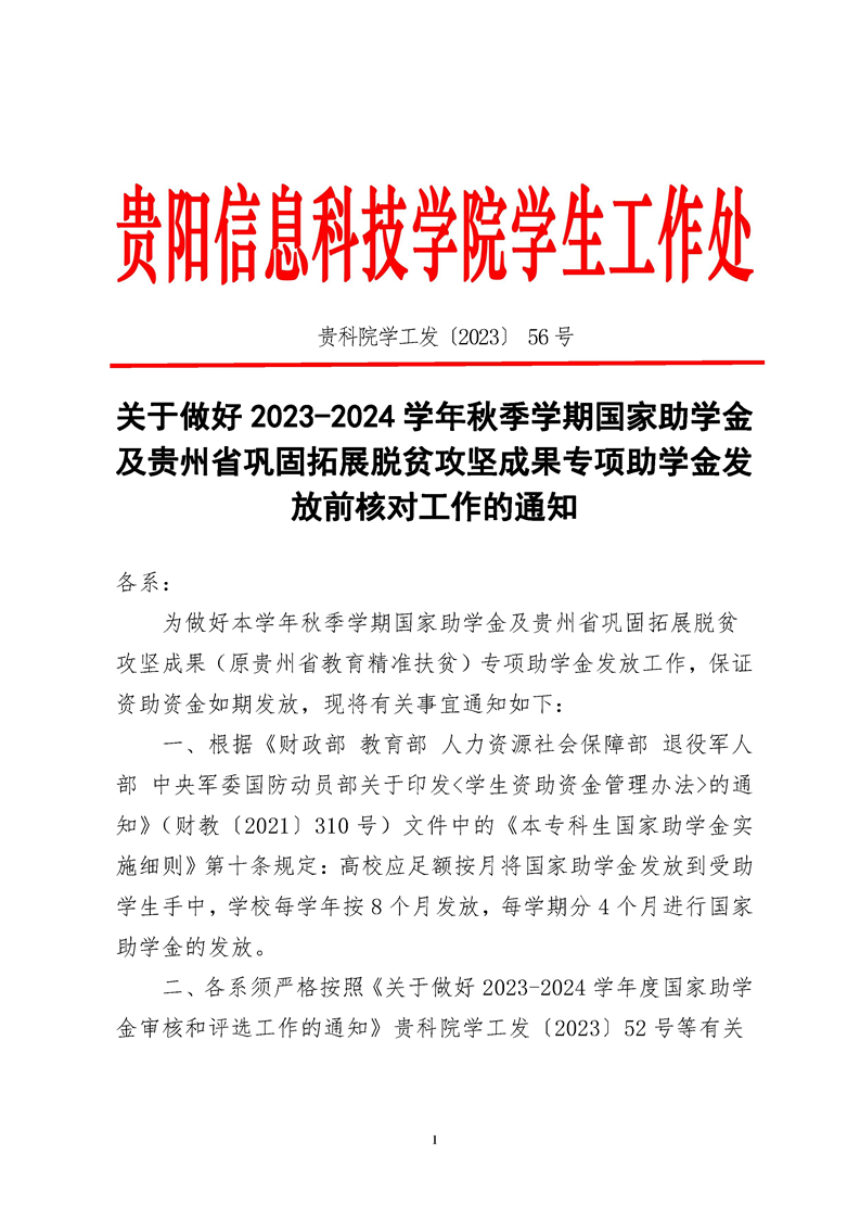 关于做好2023-2024学年秋季学期国家助学金及贵州省巩固拓展脱贫攻坚成果专项助学金发放前核对工作的通知