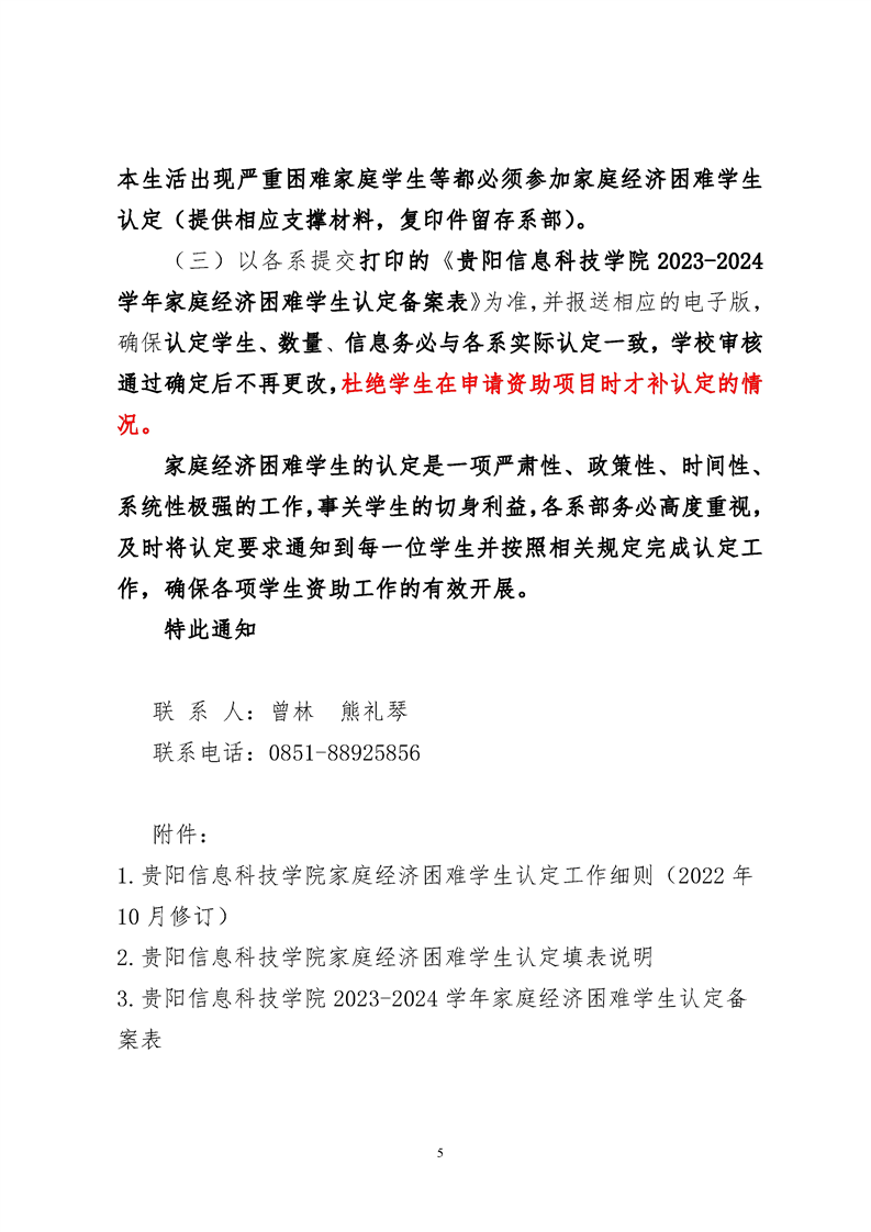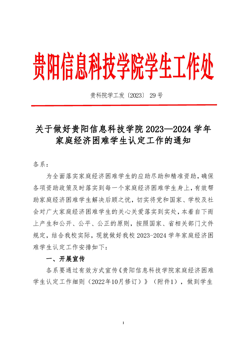 关于做好贵阳信息科技学院2023—2024学年家庭经济困难学生认定工作的通知