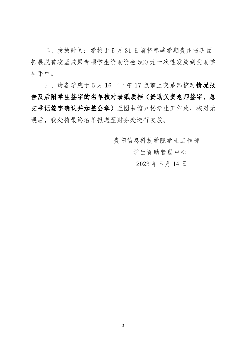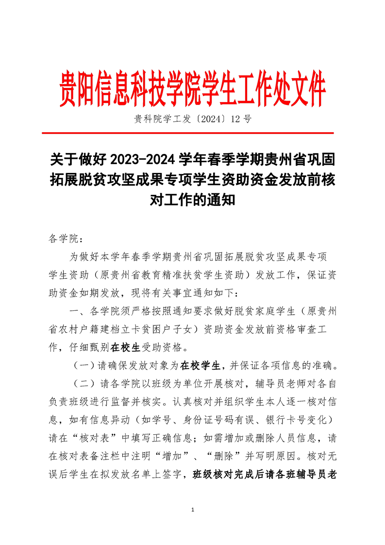 关于做好2023-2024学年春季学期贵州省巩固拓展脱贫攻坚成果专项学生资助资金发放前核对工作的通知