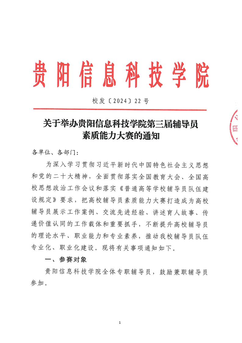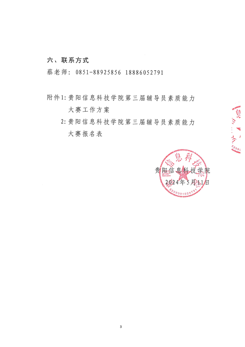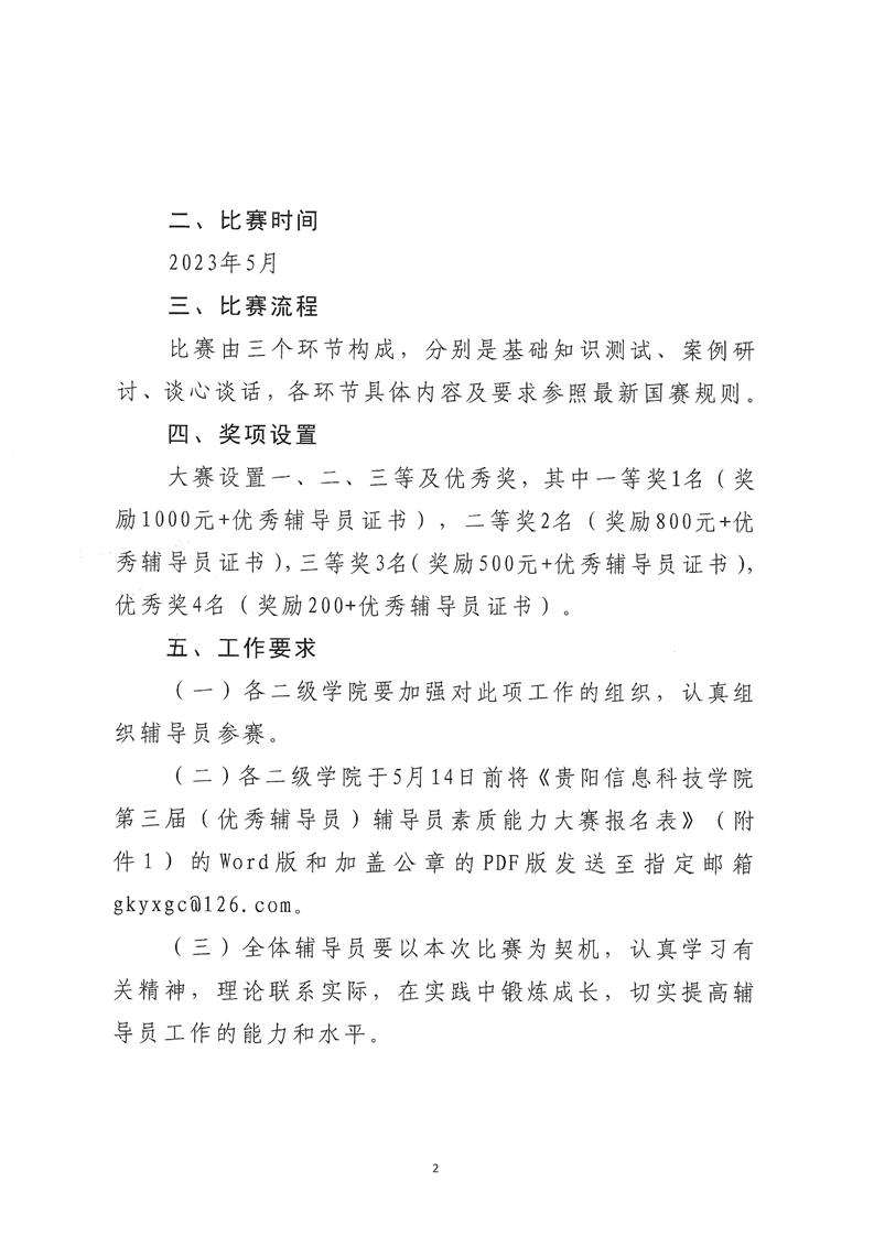 关于举办贵阳信息科技学院第三届辅导员素质能力大赛的通知