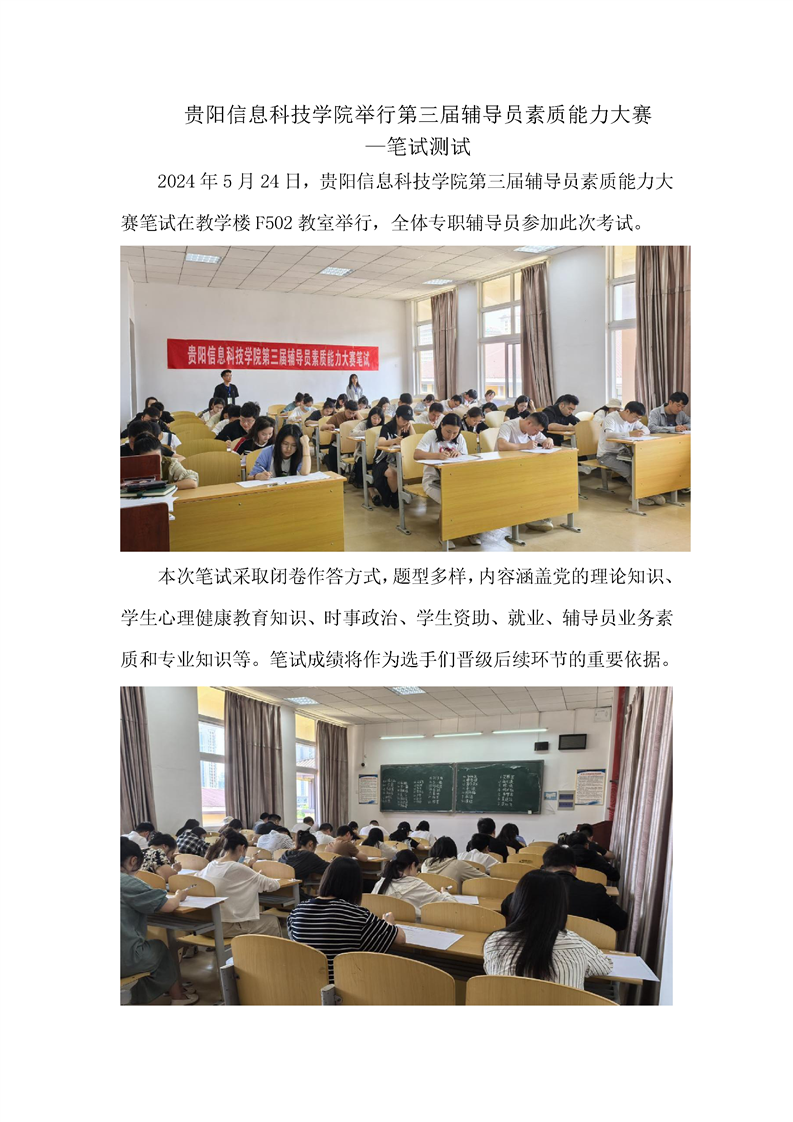 贵阳信息科技学院第三届辅导员素质能力大赛笔试测试结束