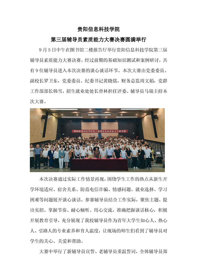 贵阳信息科技学院第三届辅导员素质能力大赛决赛圆满举行